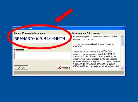 La comunicazione del codice personale assegnato è necessaria per il rilascio della password di attivazione del prodotto e deve essere fatta tramite e-mail a questo indirizzo contestualmente alla comunicazione dell'avvenuto pagamento.